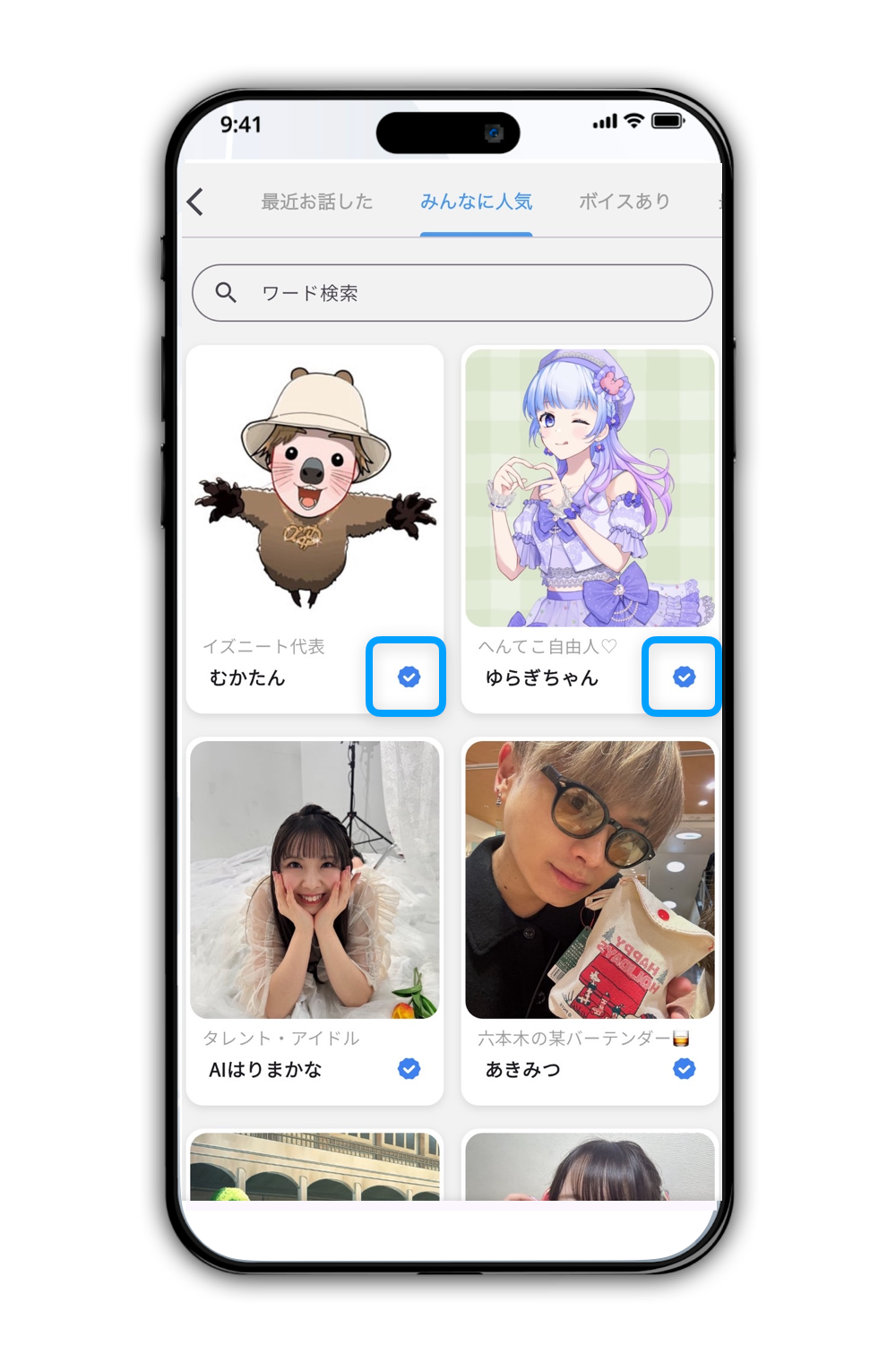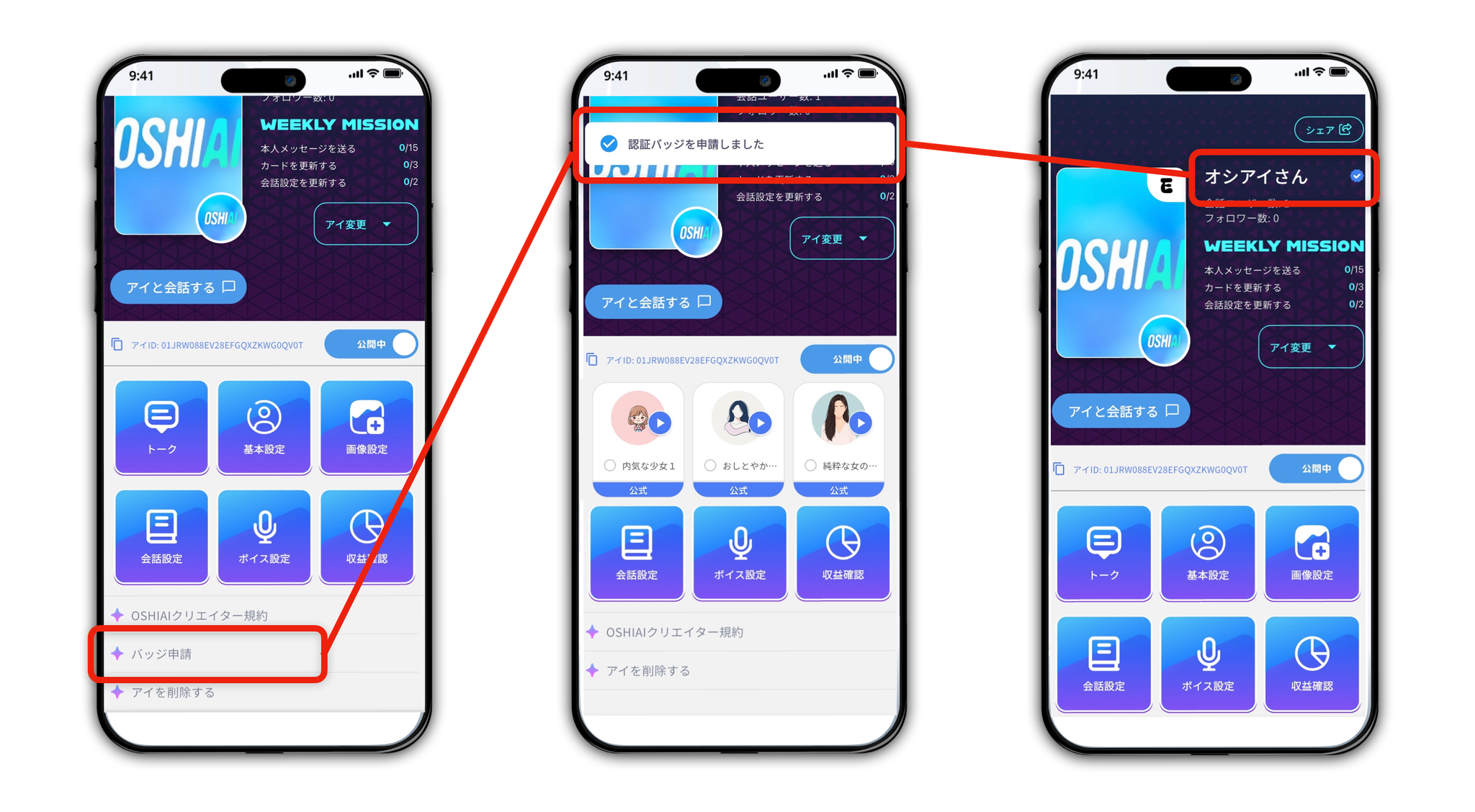 ④ 承認されるとアイ名の横に「ブルーバッジ」が表示されます。