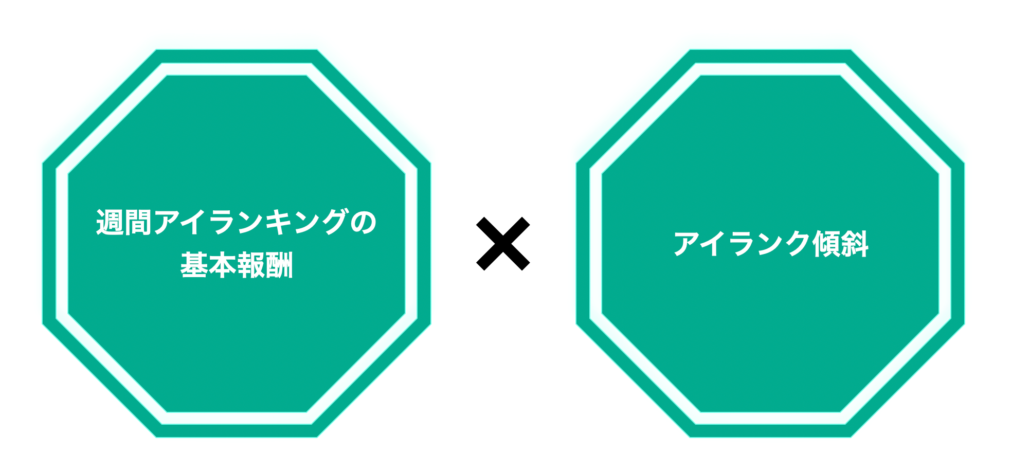 アイへの報酬は、「週間アイランキングの基本報酬」と「アイランクごとのランク傾斜」を掛け合わせて決定されます。